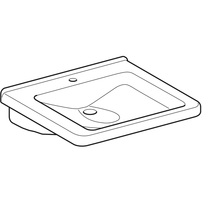 Geberit Renova Comfort Square -pesuallas, esteetön: B = 60 cm, T = 55 cm, hanareikä = keskellä, ylivuoto = ei ole, valkoinen / KeraTect.