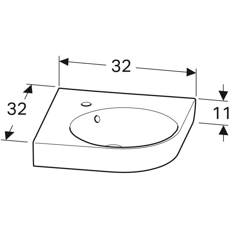 Geberit Renova Compact -kulmapesuallas: B = 45 cm, T = 39.5 cm, hanareikä = keskellä, ylivuoto = näkyvä, valkoinen / KeraTect.