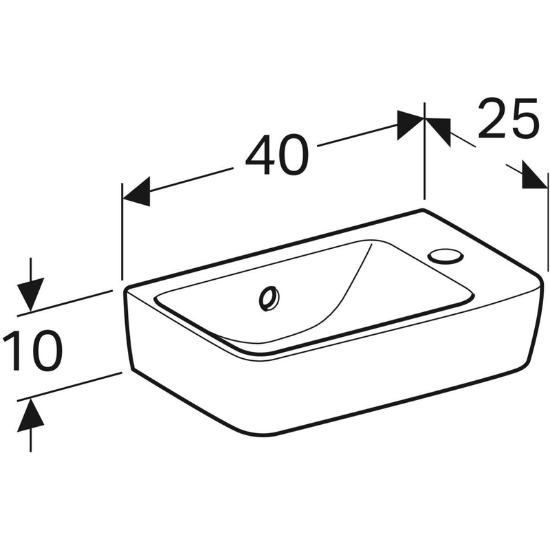 Geberit Renova Compact -pieni pesuallas, Compact: valkoinen, B = 40 cm, H = 15 cm, T = 25 cm, hanareikä = oikea, ylivuoto = näkyvä, laskutaso = ei ole.