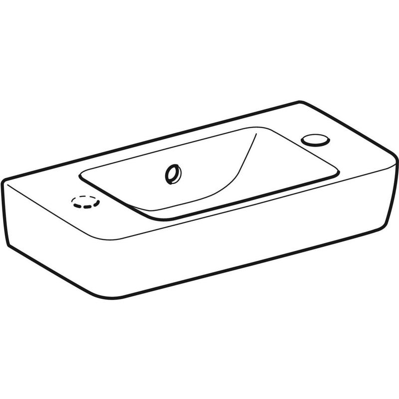 Geberit Renova Compact -pieni pesuallas, Compact, laskutaso: valkoinen, B = 50 cm, H = 15 cm, T = 25 cm, hanareikä = oikea, ylivuoto = näkyvä, laskutaso = vasen.