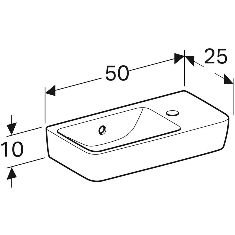 Geberit Renova Compact -pieni pesuallas, Compact: valkoinen, B = 50 cm, H = 15 cm, T = 25 cm, hanareikä = oikea, ylivuoto = näkyvä, laskutaso = ei ole.