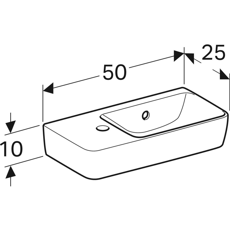 Geberit Renova Compact -pieni pesuallas, Compact: valkoinen, B = 50 cm, H = 15 cm, T = 25 cm, hanareikä = vasen, ylivuoto = näkyvä, laskutaso = ei ole.