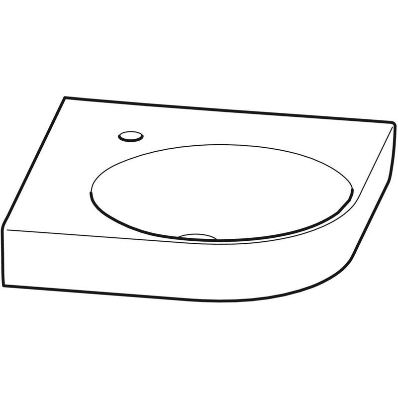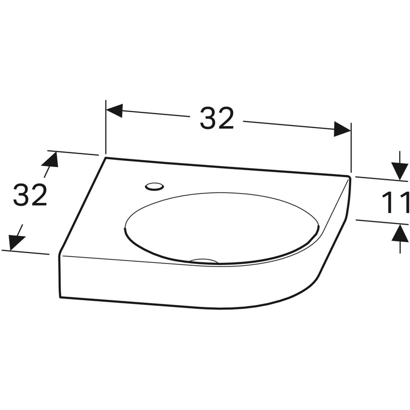 Geberit Renova Compact -kulmapesuallas: B = 45 cm, T = 39.5 cm, hanareikä = keskellä, ylivuoto = ei ole, valkoinen.