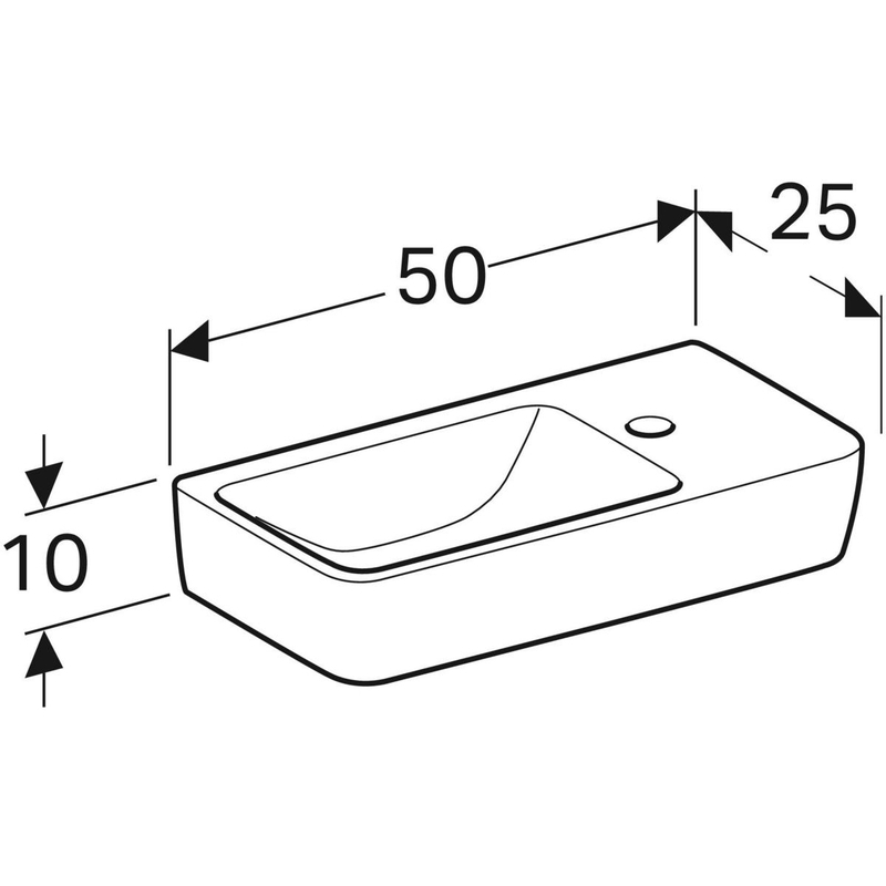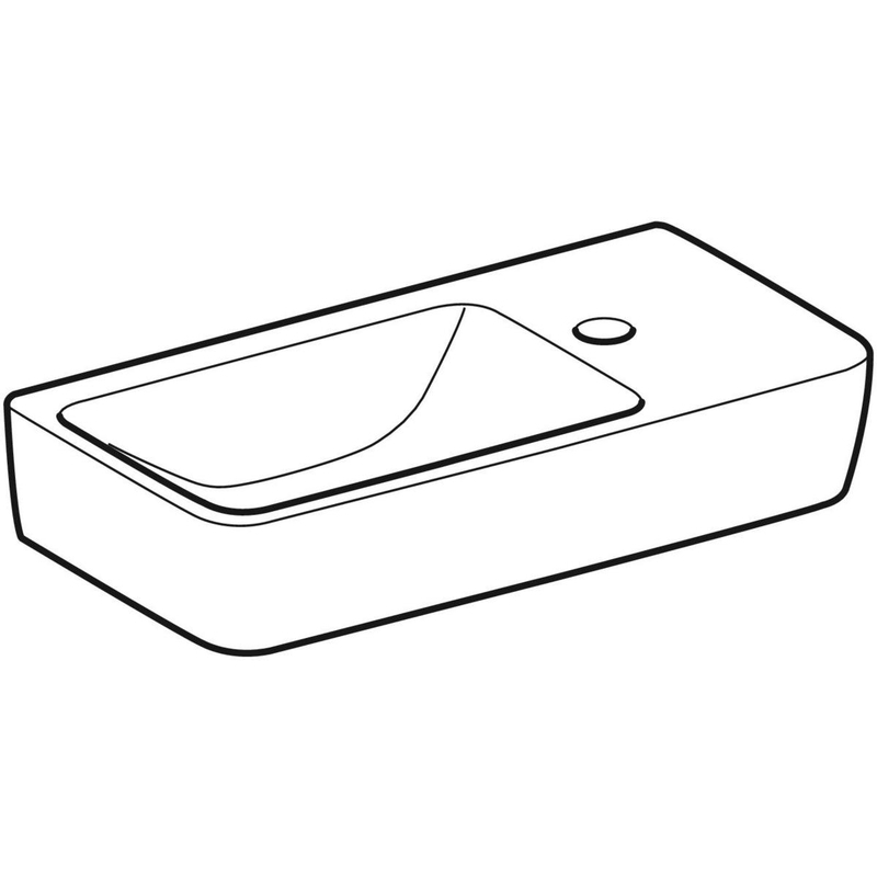 Geberit Renova Compact -pieni pesuallas, Compact: valkoinen, B = 50 cm, H = 15 cm, T = 25 cm, hanareikä = oikea, ylivuoto = ei ole, laskutaso = ei ole.