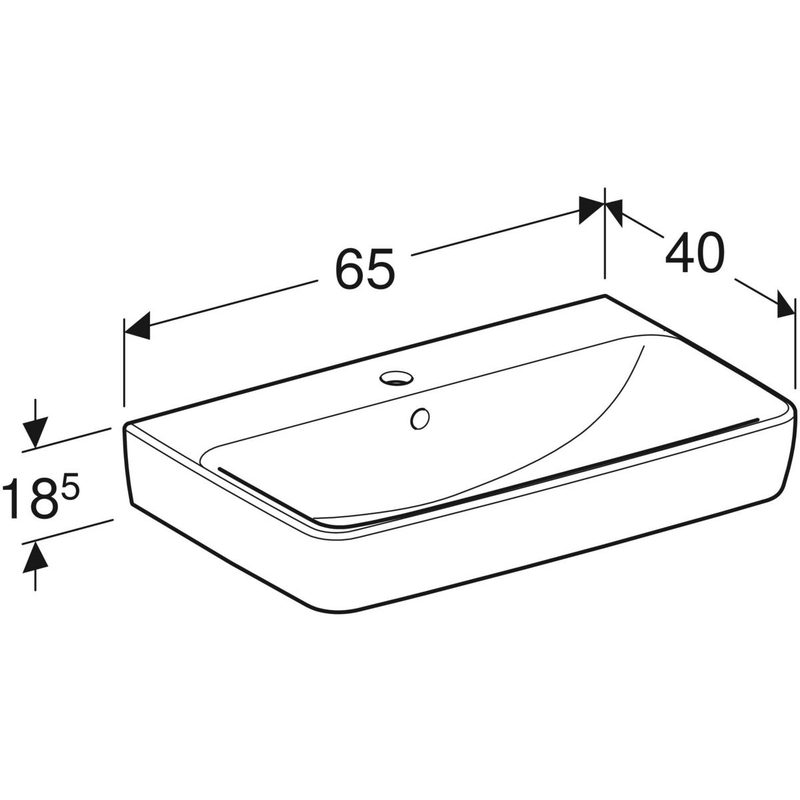 Geberit Renova Compact -pesuallas: B = 65 cm, T = 40 cm, hanareikä = keskellä, ylivuoto = näkyvä, valkoinen / KeraTect.