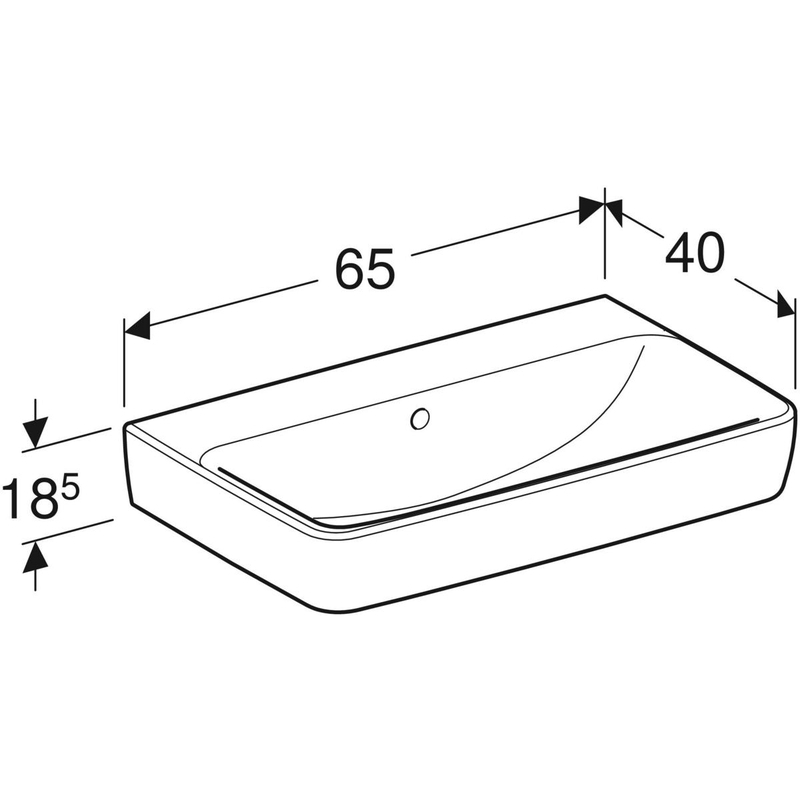 Geberit Renova Compact -pesuallas: B = 65 cm, T = 40 cm, hanareikä = ei ole, ylivuoto = näkyvä, valkoinen / KeraTect.