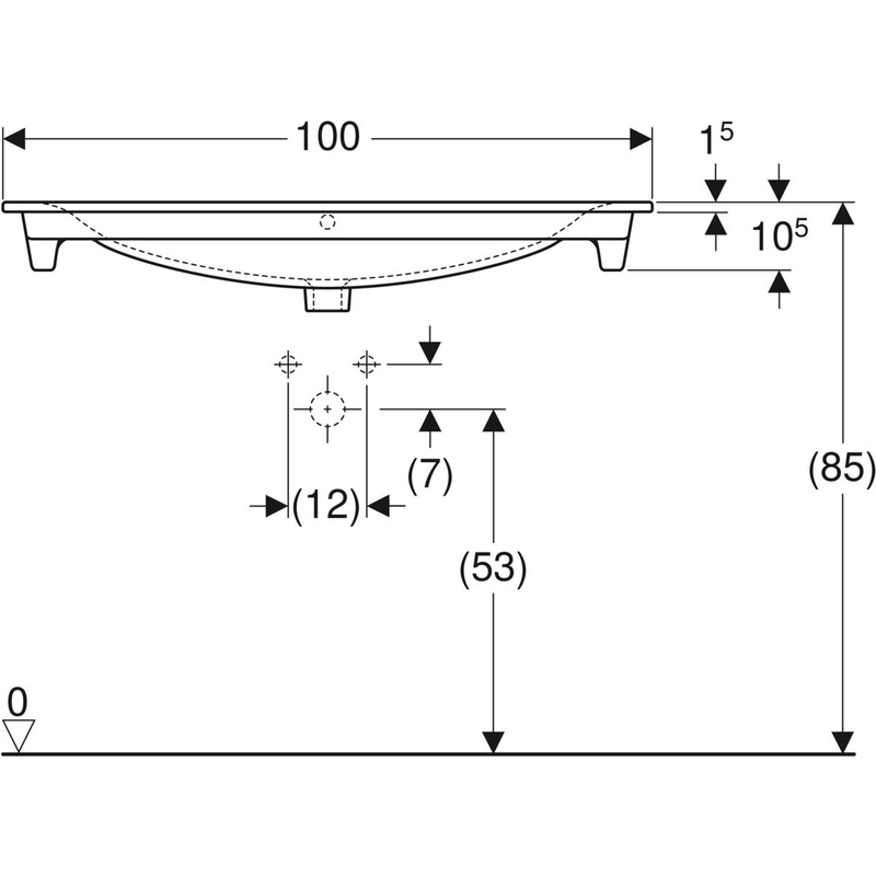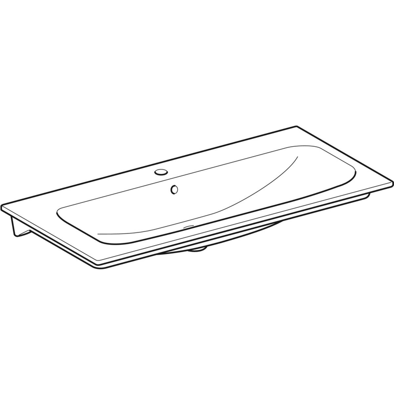 Geberit Renova Plan -tasoallas: B = 100 cm, T = 48 cm, hanareikä = keskellä, ylivuoto = näkyvä, valkoinen / KeraTect.