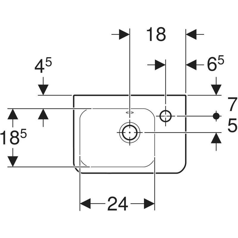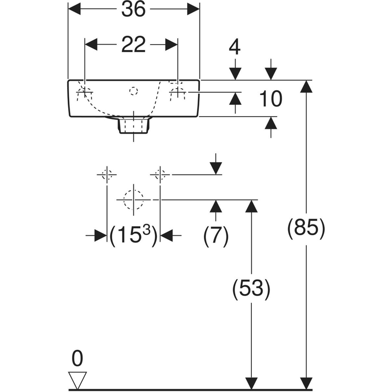 Geberit Renova Plan -pieni pesuallas, Compact: valkoinen, B = 36 cm, H = 14.5 cm, T = 25 cm, hanareikä = oikea, ylivuoto = näkyvä.