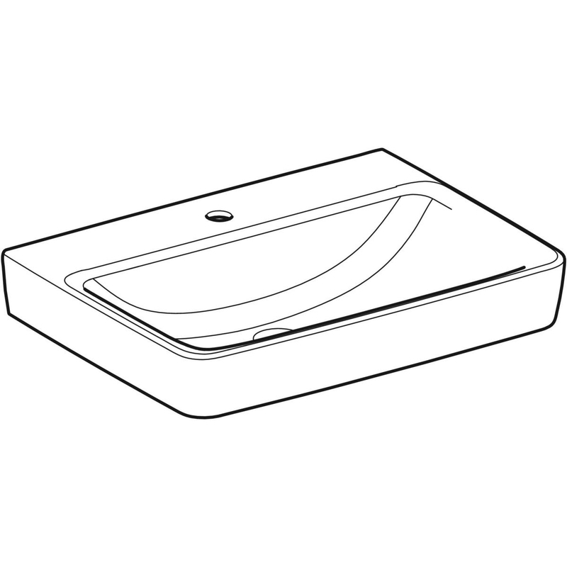 Geberit Renova Plan -pesuallas: B = 65 cm, T = 48 cm, hanareikä = keskellä, ylivuoto = ei ole, valkoinen / KeraTect.
