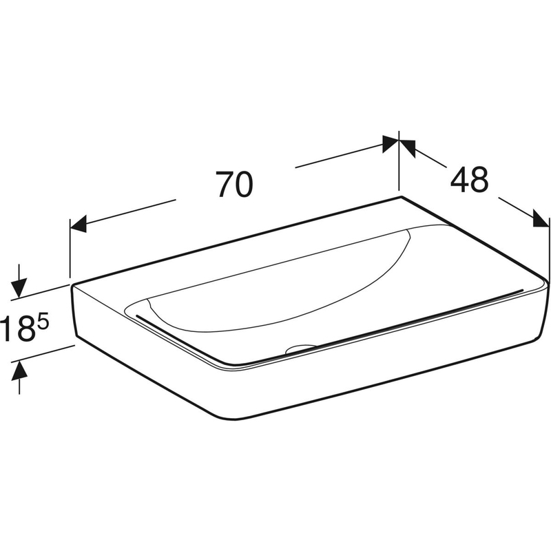 Geberit Renova Plan -pesuallas: B = 70 cm, T = 48 cm, hanareikä = ei ole, ylivuoto = ei ole, valkoinen / KeraTect.