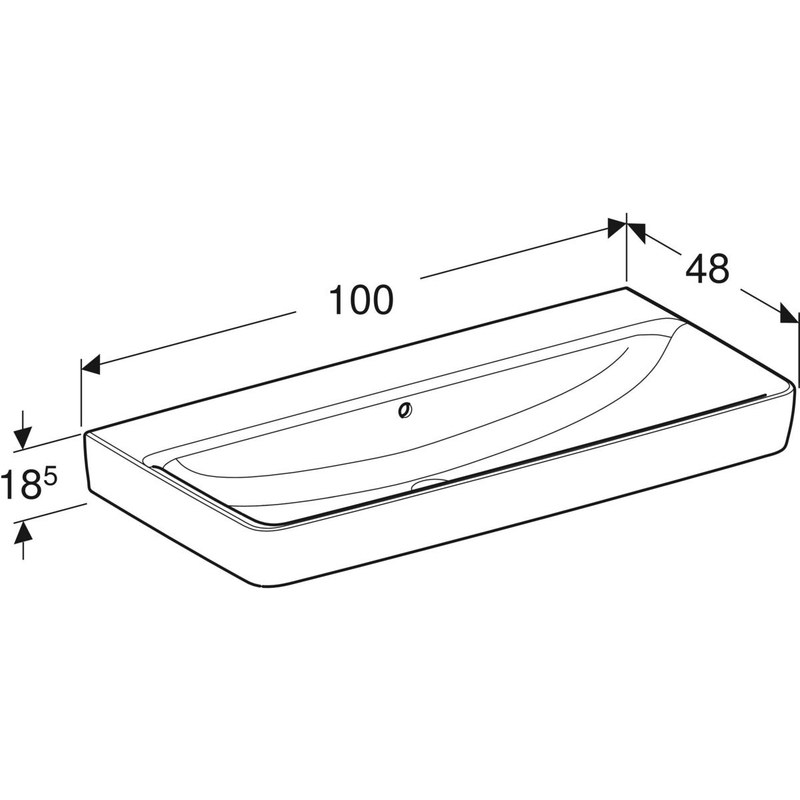 Geberit Renova Plan -pesuallas: B = 100 cm, T = 48 cm, hanareikä = ei ole, ylivuoto = näkyvä, valkoinen / KeraTect.