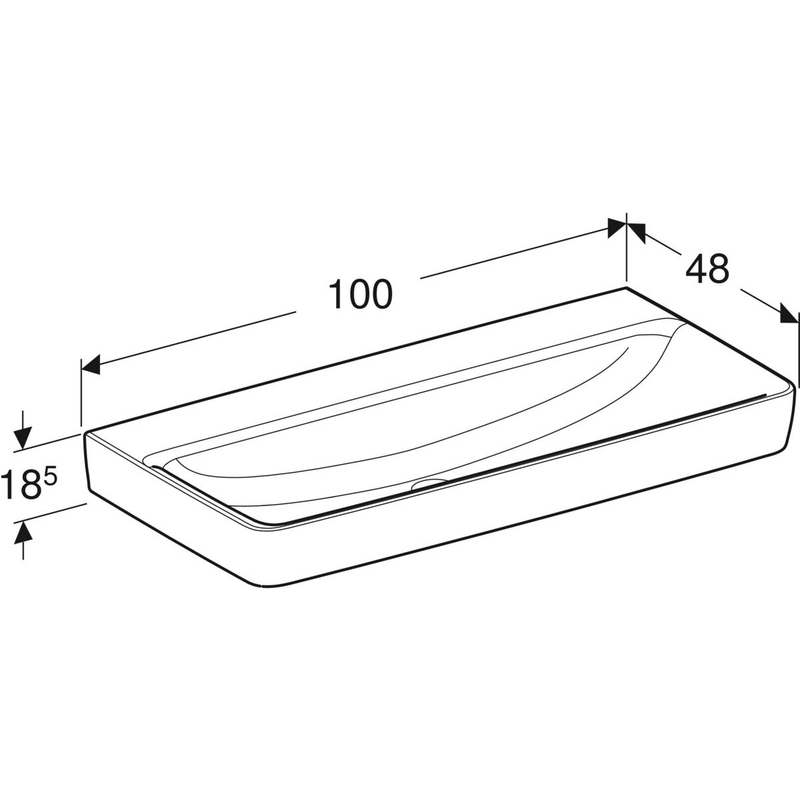 Geberit Renova Plan -pesuallas: B = 100 cm, T = 48 cm, hanareikä = ei ole, ylivuoto = ei ole, valkoinen / KeraTect.