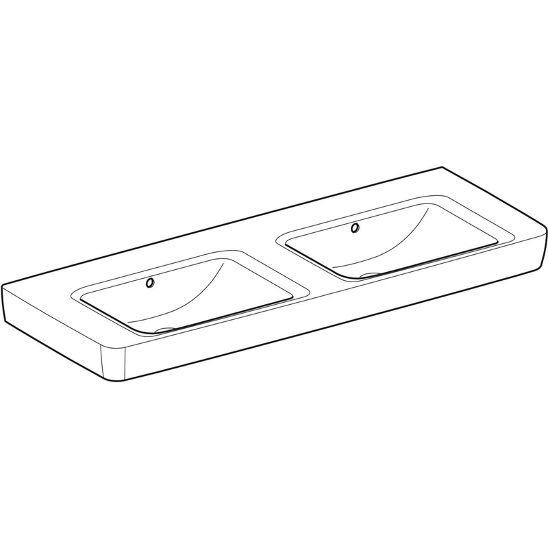Geberit Renova Plan -kaksoispesuallas: B = 130 cm, T = 48 cm, hanareikä = ei ole, ylivuoto = näkyvä, valkoinen.