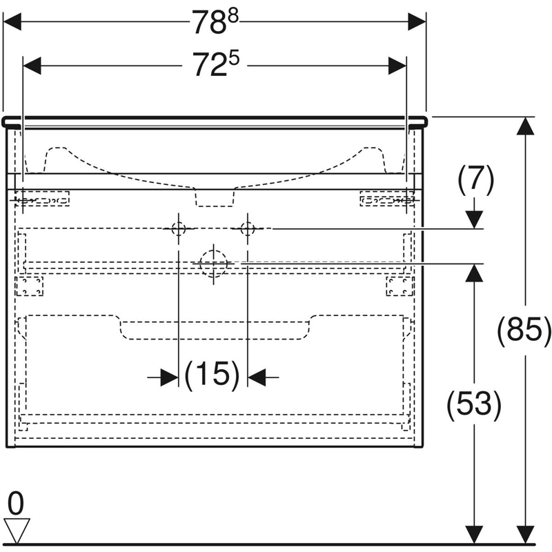 Geberit Renova Plan -allaskaappipaketti, Slim Rim, yhdellä laatikolla ja yhdellä sisälaatikolla: B = 78.8 cm, H = 62.2 cm, T = 48 cm, pesualtaan leveys = 80 cm. Hikkoripuu / kalvo strukturoitu, valkoinen.