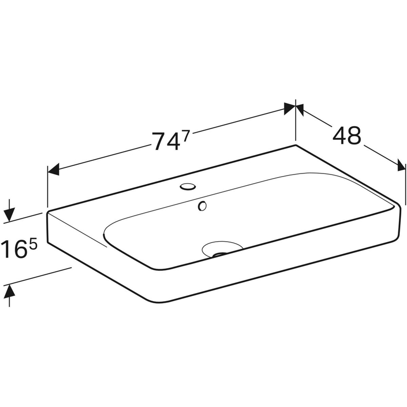 Geberit Smyle Square -pesuallas: B = 75 cm, T = 48 cm, hanareikä = keskellä, ylivuoto = näkyvä, valkoinen/ KeraTect.