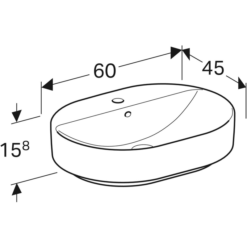 Geberit VariForm -tason päälle asennettava pesuallas, ellipsi, hanasaarekkeella: B = 60 cm, T = 45 cm, hanareikä = keskellä, ylivuoto = näkyvä, valkoinen/ KeraTect.