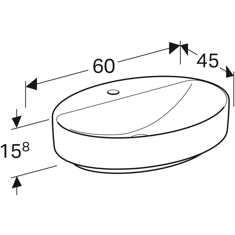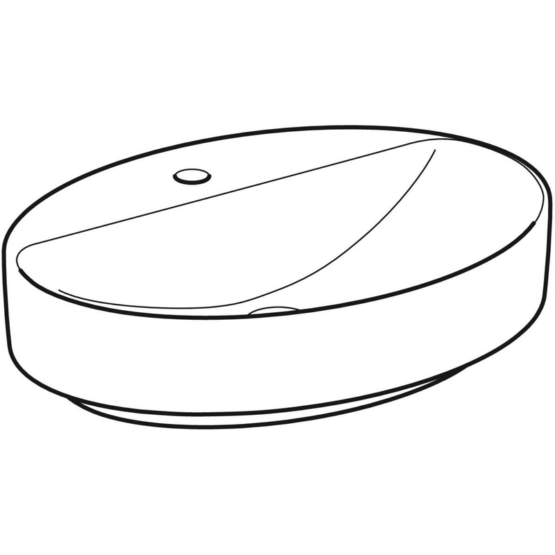 Geberit VariForm -tason päälle asennettava pesuallas, ovaali, hanasaarekkeella: B = 60 cm, T = 45 cm, hanareikä = keskellä, ylivuoto = ei ole, valkoinen.