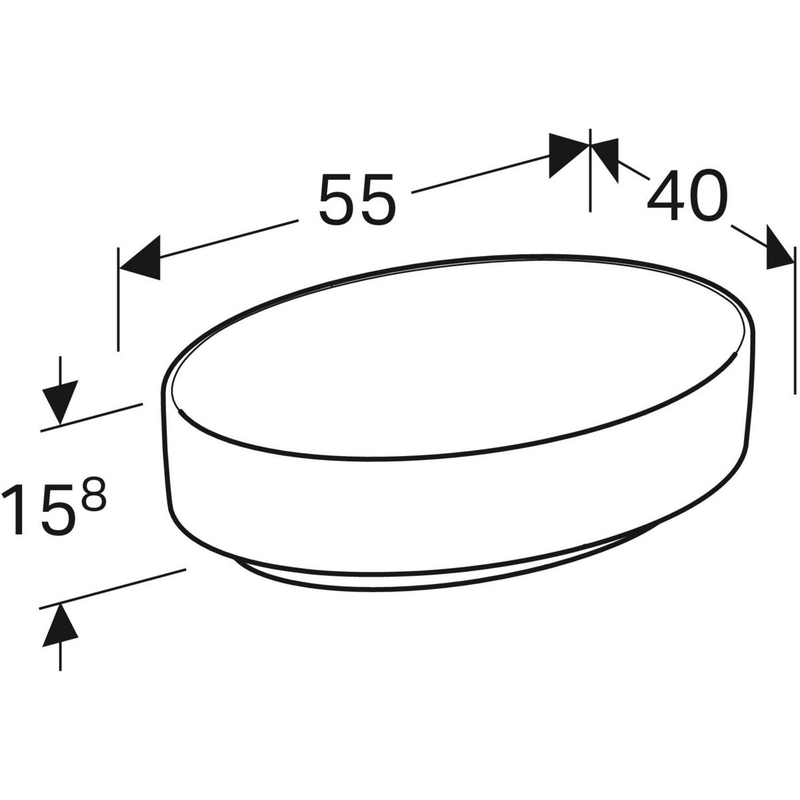 Geberit VariForm -tason päälle asennettava pesuallas, ovaali: B = 55 cm, T = 40 cm, hanareikä = ei ole, ylivuoto = ei ole, valkoinen/ KeraTect.