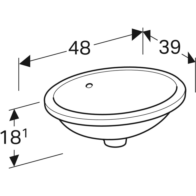 Geberit VariForm -tason alle asennettava pesuallas, ovaali: b1 = 42 cm, T = 42 cm, hanareikä = ei ole, ylivuoto = näkyvä, valkoinen/ KeraTect.