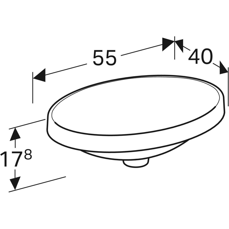 Geberit VariForm -tasoon asennettava pesuallas, ovaali: B = 55 cm, T = 40 cm, hanareikä = ei ole, ylivuoto = ei ole, valkoinen.