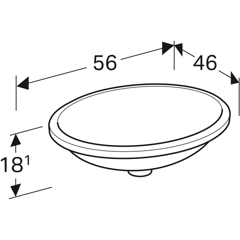 Geberit VariForm -tason alle asennettava pesuallas, ovaali: b1 = 50 cm, T = 46 cm, hanareikä = ei ole, ylivuoto = ei ole, valkoinen.
