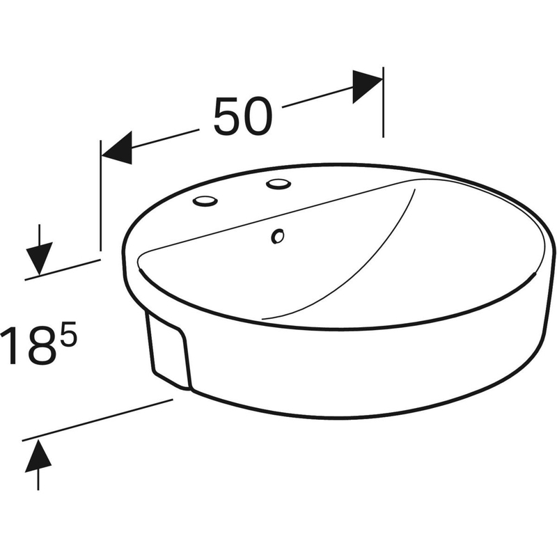 Geberit VariForm -osittain tasoon asennettava pesuallas, pyöreä: D = 50 cm, hanareikä = vasen ja oikea, ylivuoto = näkyvä, valkoinen.