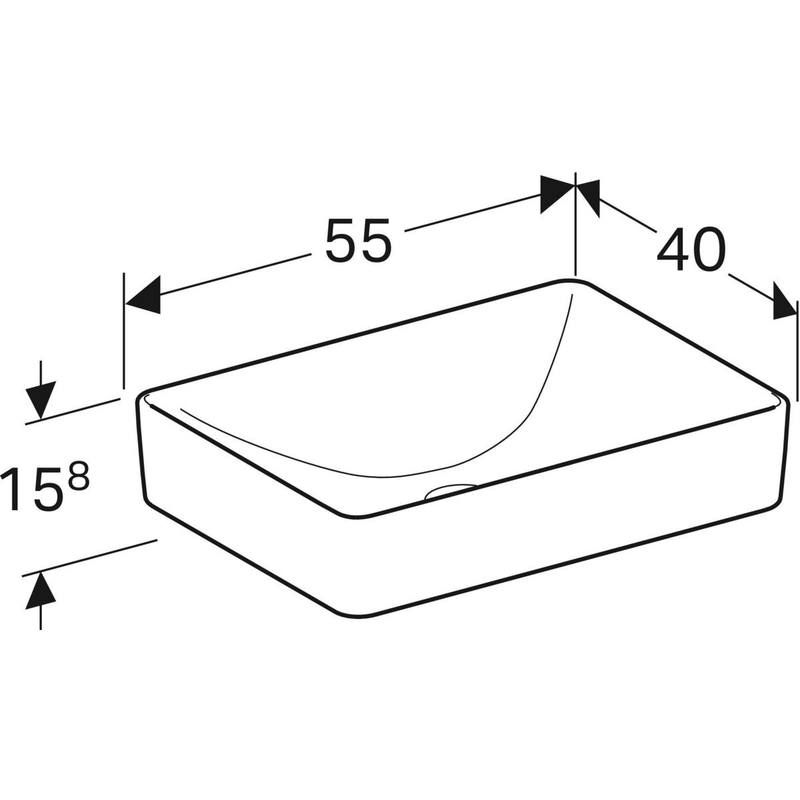 Geberit VariForm -tason päälle asennettava pesuallas, suorakulmainen: B = 55 cm, T = 40 cm, hanareikä = ei ole, ylivuoto = ei ole, valkoinen.