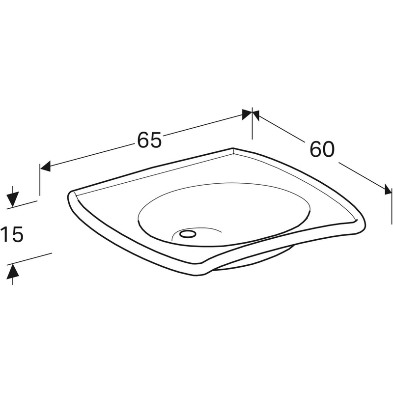 Geberit Vitalis -pesuallas, esteetön: B = 65 cm, T = 60 cm, hanareikä = ei ole, ylivuoto = ei ole, valkoinen.