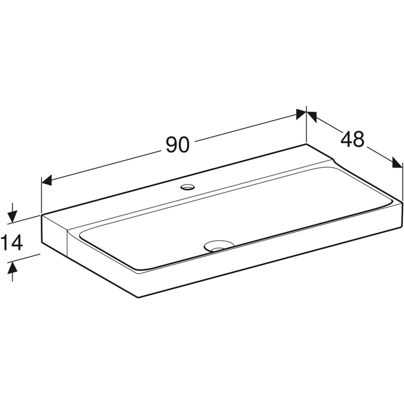 Geberit Xeno² -pesuallas: B = 90 cm, T = 48 cm, hanareikä = keskellä, ylivuoto = ei ole, valkoinen/ KeraTect.