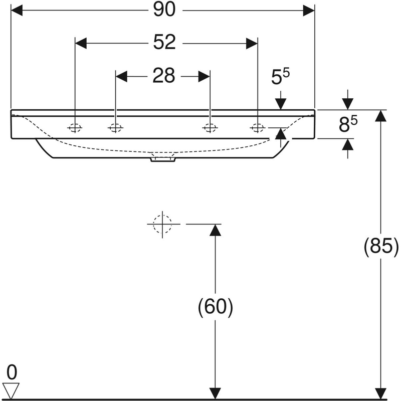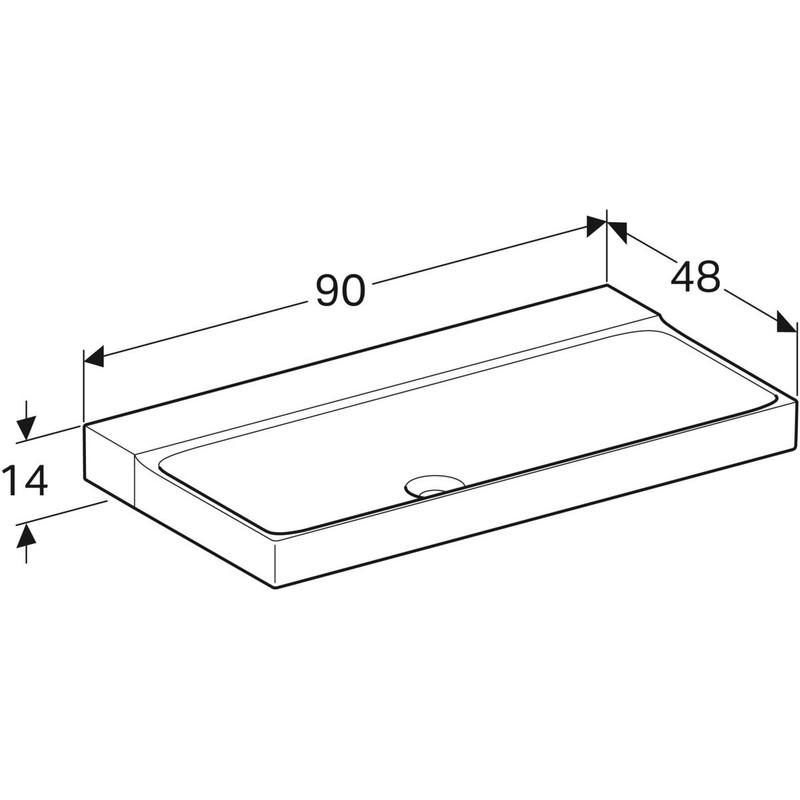 Geberit Xeno² -pesuallas: B = 90 cm, T = 48 cm, hanareikä = ei ole, ylivuoto = ei ole, valkoinen/ KeraTect.