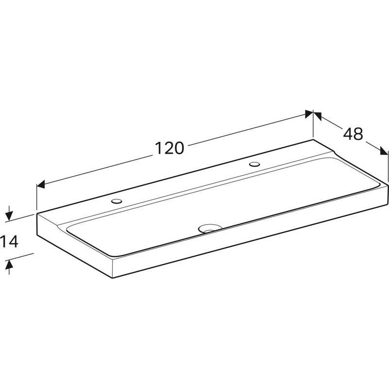 Geberit Xeno² -pesuallas: B = 120 cm, T = 48 cm, hanareikä = vasen ja oikea, ylivuoto = ei ole, valkoinen/ KeraTect.