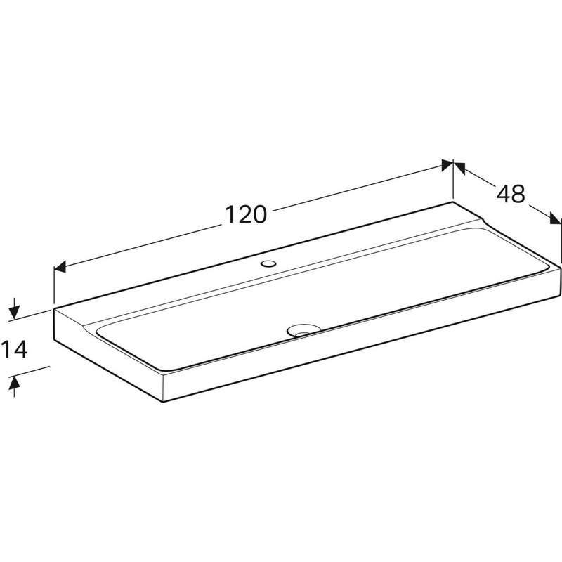 Geberit Xeno² -pesuallas: B = 120 cm, T = 48 cm, hanareikä = keskellä, ylivuoto = ei ole, valkoinen/ KeraTect.
