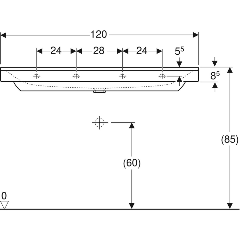 Geberit Xeno² -pesuallas: B = 120 cm, T = 48 cm, hanareikä = ei ole, ylivuoto = ei ole, valkoinen/ KeraTect.
