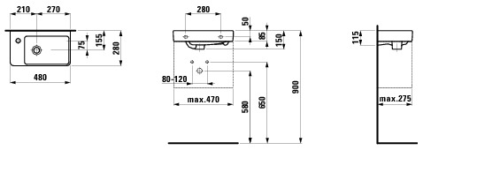 Pesuallas Laufen Pro S 480x280x150 vasen 8159550001041