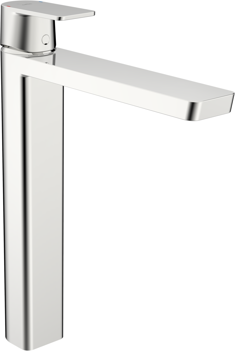Korkea pesuallashana, jossa on kiinteä juoksuputki ja joustavat kytkentäputket. Hanassa on integroitu poresuutin, jonka kulmaa voidaan säätää veden roiskumisen estämiseksi. Korkeutensa ansiosta hana sopii hyvin malja-altaille.