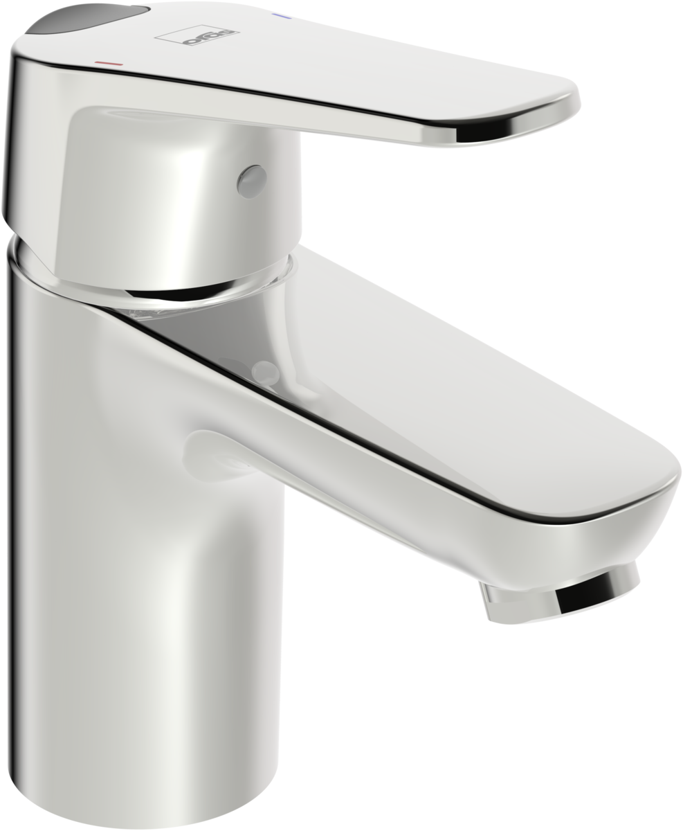 - Tuotekuvaus Pesuallashana, jossa kiinteä juoksuputki. Hanan vivussa on veden lämpöä ja virtaamaa rajoittava ekonappi. Joustavat kytkentäputket.