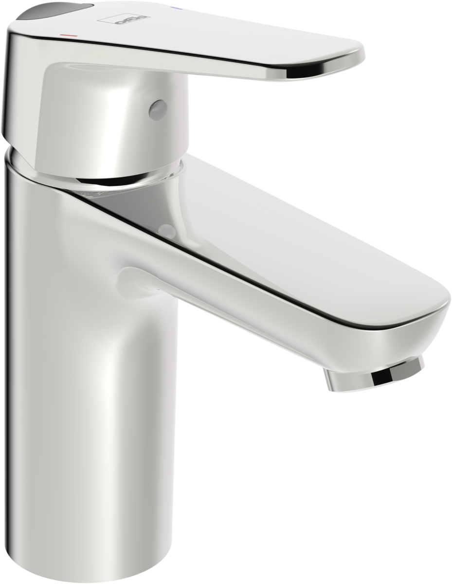 Pesuallashana XL, jossa kiinteä juoksuputki. Hanan vivussa on veden lämpöä ja virtaamaa rajoittava ekonappi. Joustavat kytkentäputket.