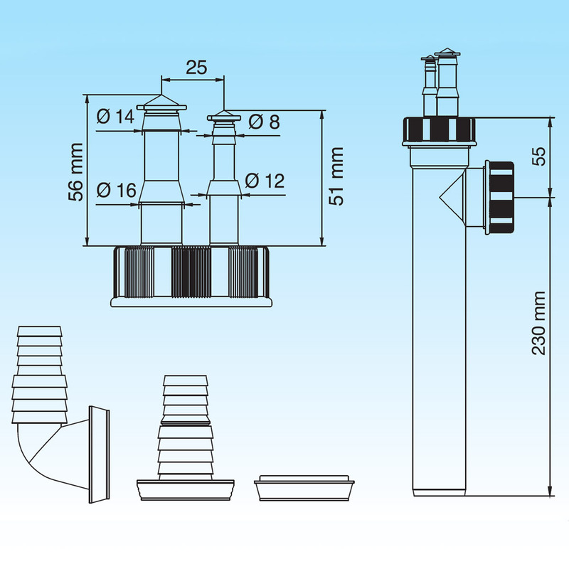 Pesukoneen poistoputki PP Alterna Lira 8-25x40x230 mm valkoinen