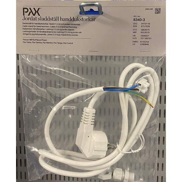 Pistotulppajohto Pax 1,5 m maadoitettu