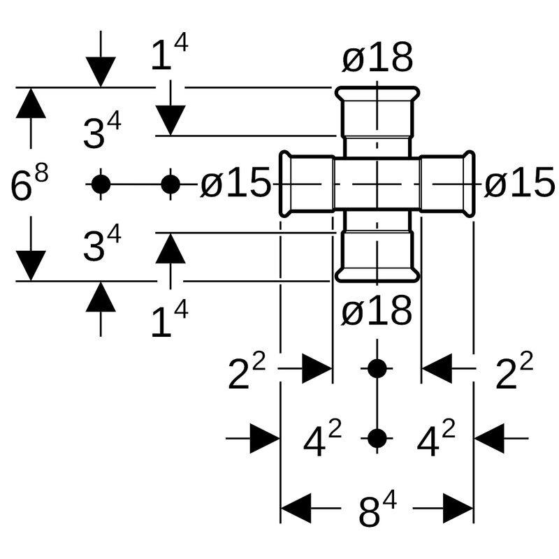 - ETIM-luokka EC003026 - Putkiosa neljällä liitännällä