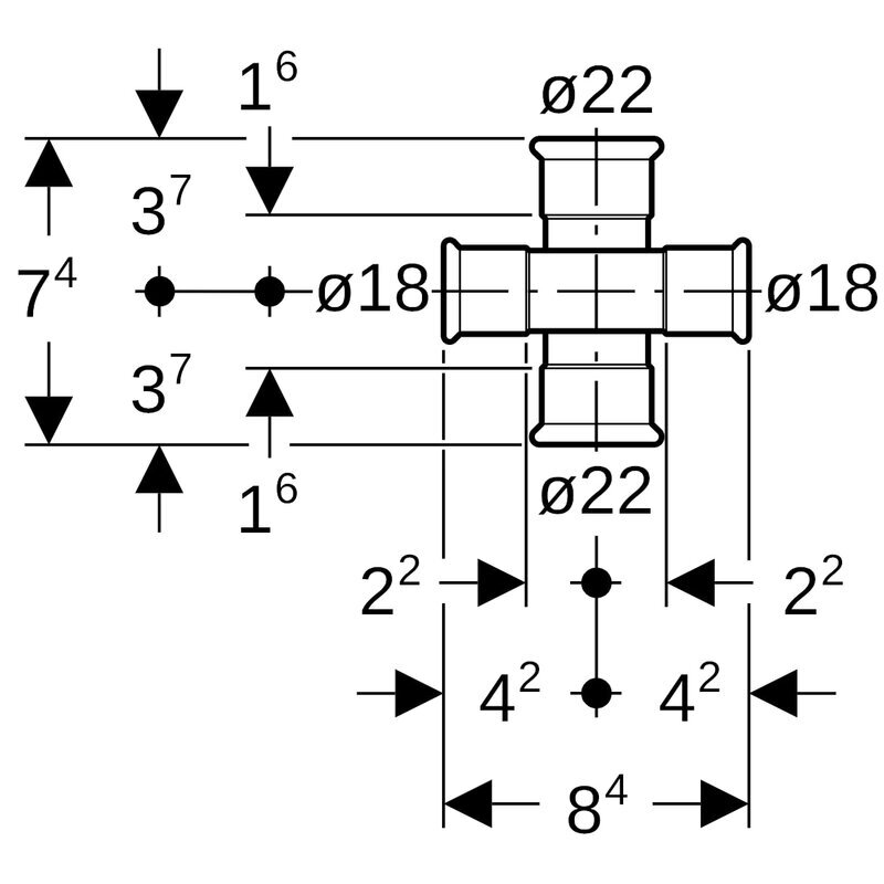 - ETIM-luokka EC003026 - Putkiosa neljällä liitännällä