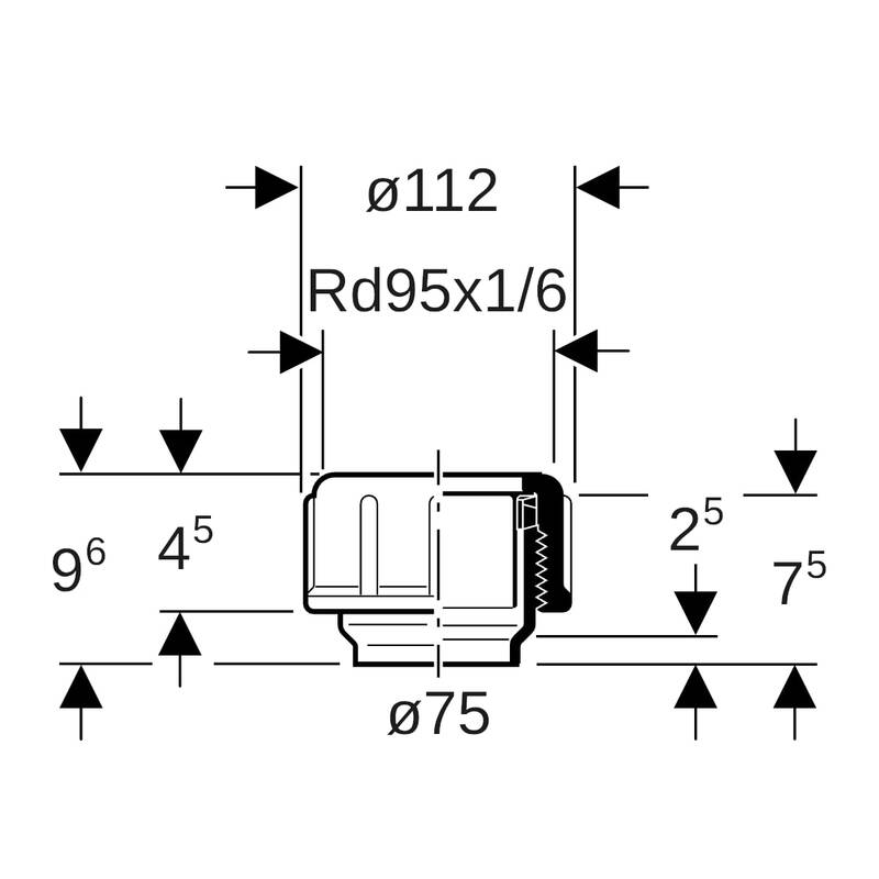 Geberit PE -kierreliitin puristusrengasliitoksella: d = 75 mm.