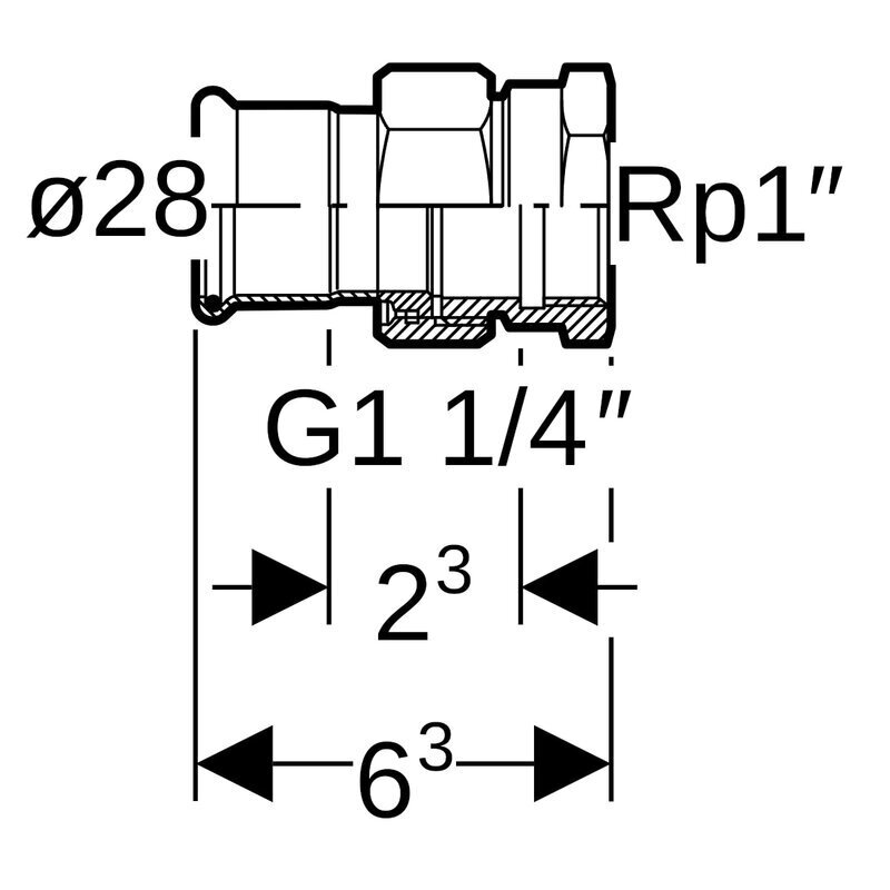 Geberit Mapress Kupari -yhdistäjä sisäkierteellä: CC499K, d = 28 mm, Rp = 1".