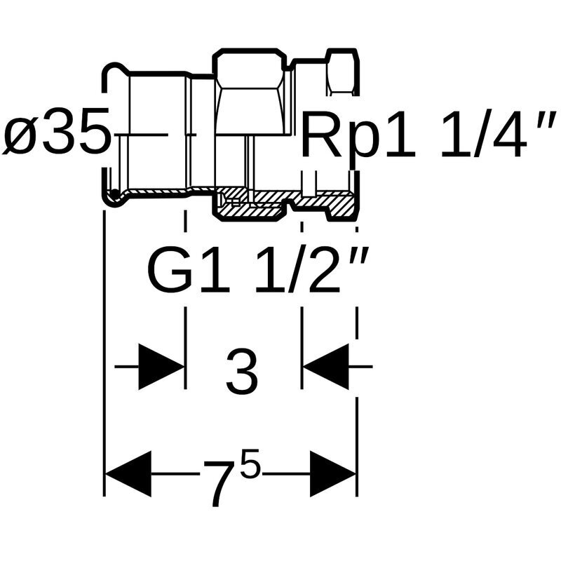 Geberit Mapress Kupari -yhdistäjä sisäkierteellä: CC499K, d = 35 mm, Rp = 1 1/4".
