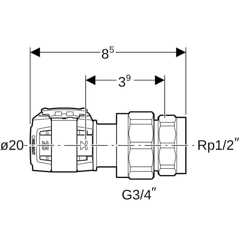 Puristusyhdistäjä Geberit FlowFit d20xRp1/2" SK, CUZN21SI3P
