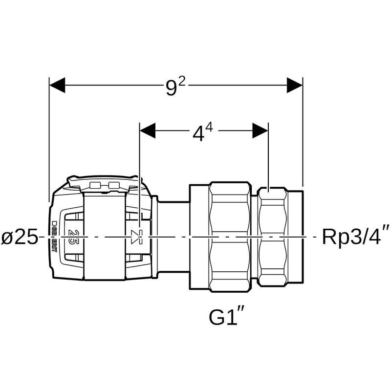 Puristusyhdistäjä Geberit FlowFit d25xRp3/4" SK, CUZN21SI3P