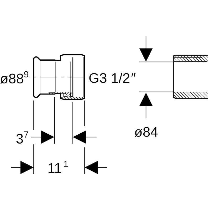 - ETIM-luokka EC003024 - Putkiosa kahdella liitännällä