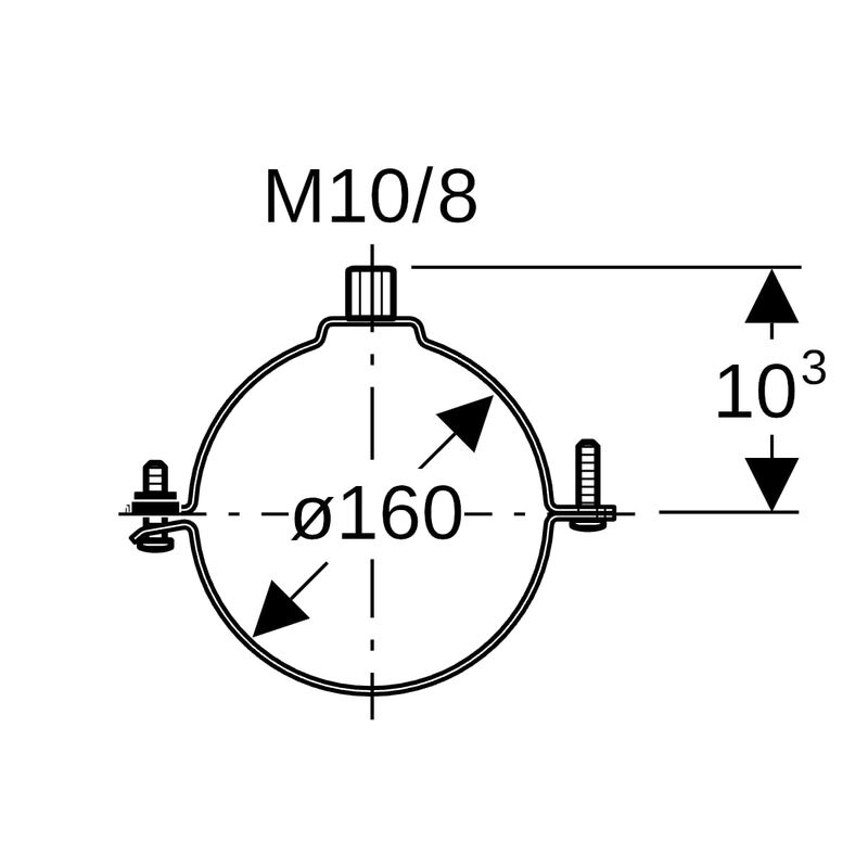 Geberit-putkikannake kierremuhvilla M8/ M10: di = 160 mm.