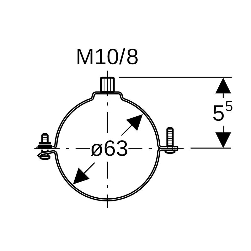 Geberit-putkikannake kierremuhvilla M8/ M10: di = 63 mm.