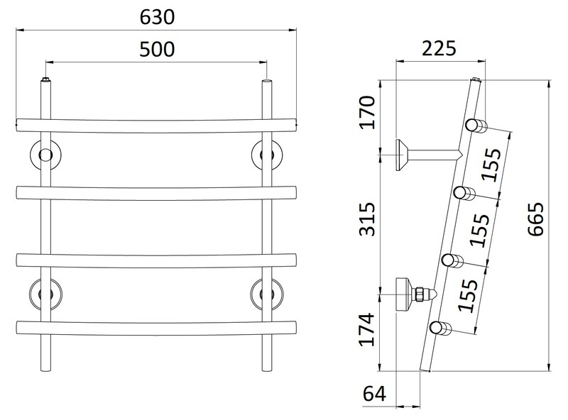 REJ Design BT Bamboo Quartet valkoinen pyyhekuivain, kytkentä alhaalta. Kytkentäväli 500 mm.